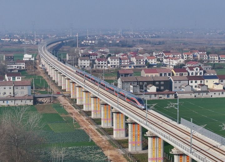 2025年12月26日,在湖北荆门钟祥市境内,列车行驶在沪渝蓉沿江高铁武宜段。(谢勇摄)