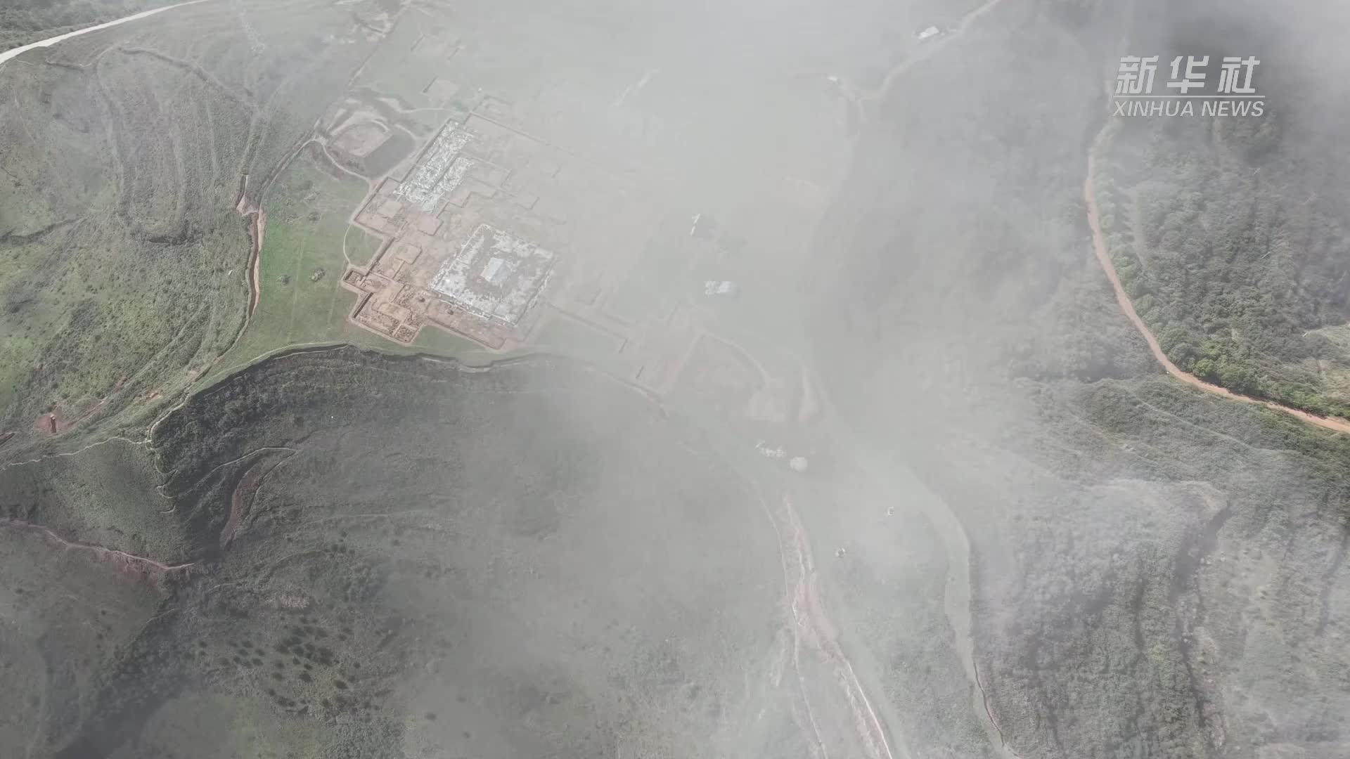 今年是该遗址田野考古的最后一年;经过6年持续发掘,遗址整体建筑格局已基本厘清。整个遗址建于被“削平”的山顶平台之上,中心以面积约900平方米的方形夯土台为核心建筑,东西南北各有三组平行分布的门塾建筑,四角分布曲尺形建筑,形成中心对称的建筑格局,结合其所处地理位置及建筑形制特点,它很可能是为秦始皇西巡准备的祭祀场所。