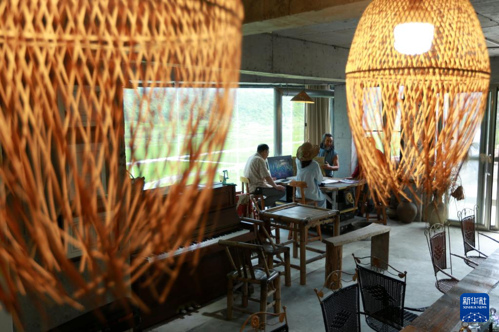 7月3日,在贵州省荔波县朝阳镇洪江村,来自各地的艺术从业者进行艺术交流。