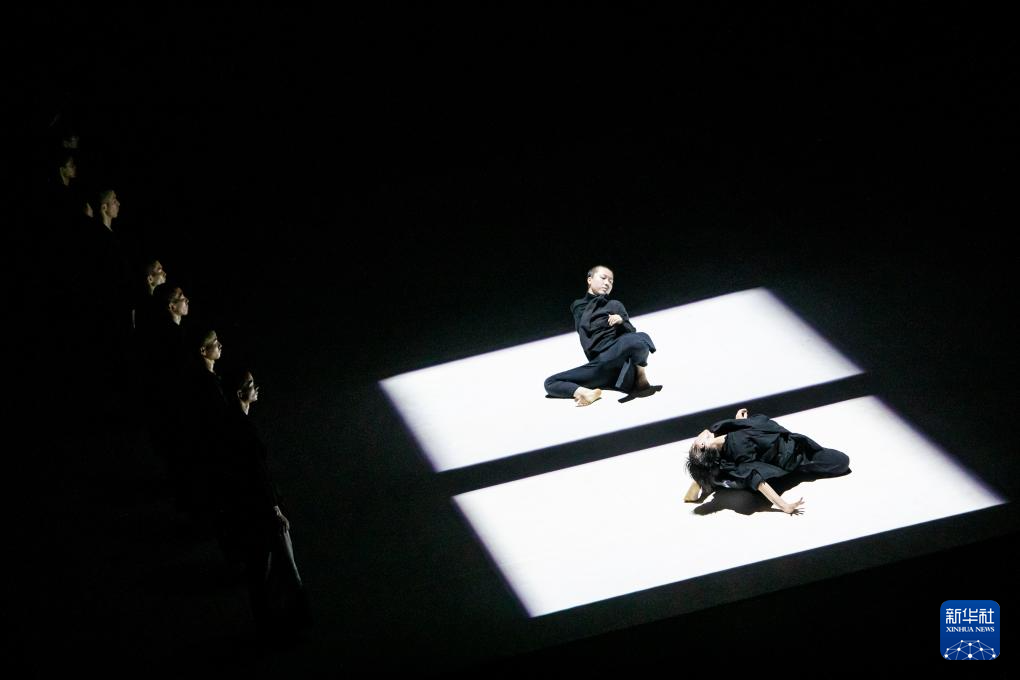 7月14日,中国“陶身体剧场”舞团的舞蹈演员在希腊南部卡拉马塔市的舞蹈剧场表演。新华社发(帕纳约蒂斯·莫斯卡德里欧摄)