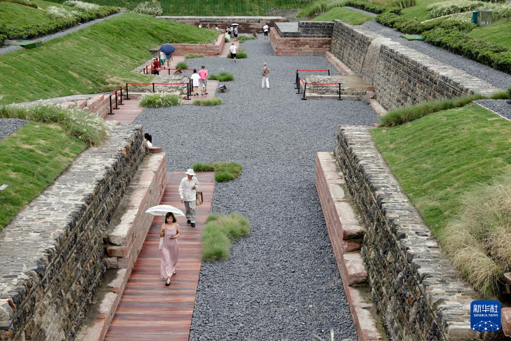 7月20日拍摄的位于成都体育中心内的东华门遗址公园内场遗址区(无人机照片)。