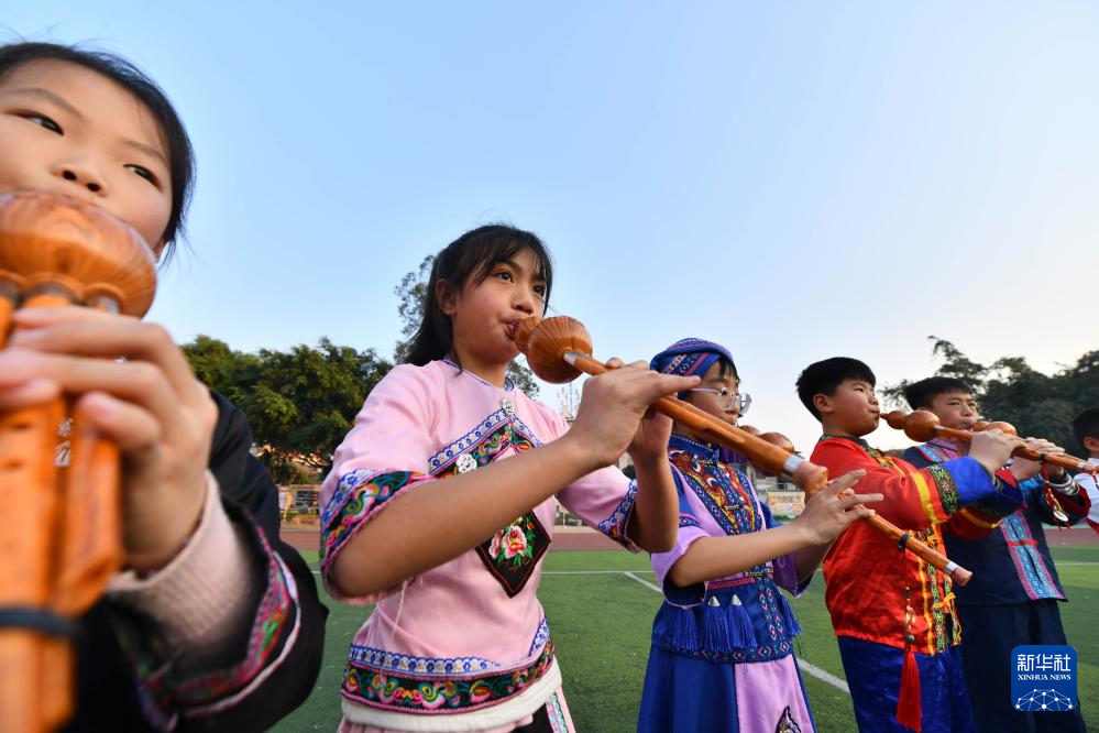 近年来,广西柳州市在开展民族团结进步文化进校园活动中,将葫芦丝、竹竿舞、芦笙、书法、山歌等传统文化引进课堂,让孩子们在传承优秀中华文化的同时,接受民族团结进步教育,铸牢中华民族共同体意识。