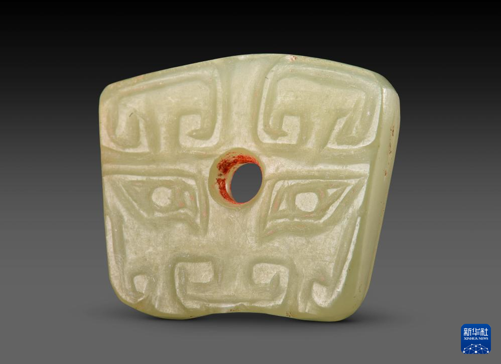 陕西清涧寨沟遗址后刘家塔墓地出土的玉兽面饰(资料照片)。