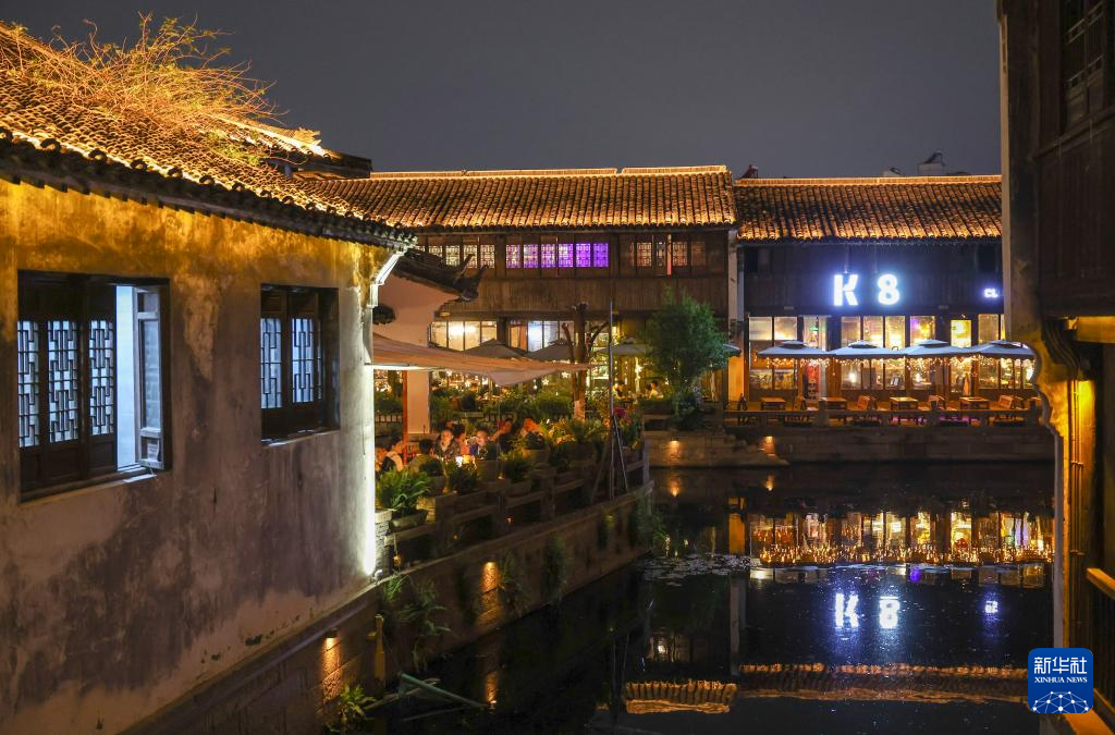 4月25日,顾客在月河历史街区的餐厅里用餐。