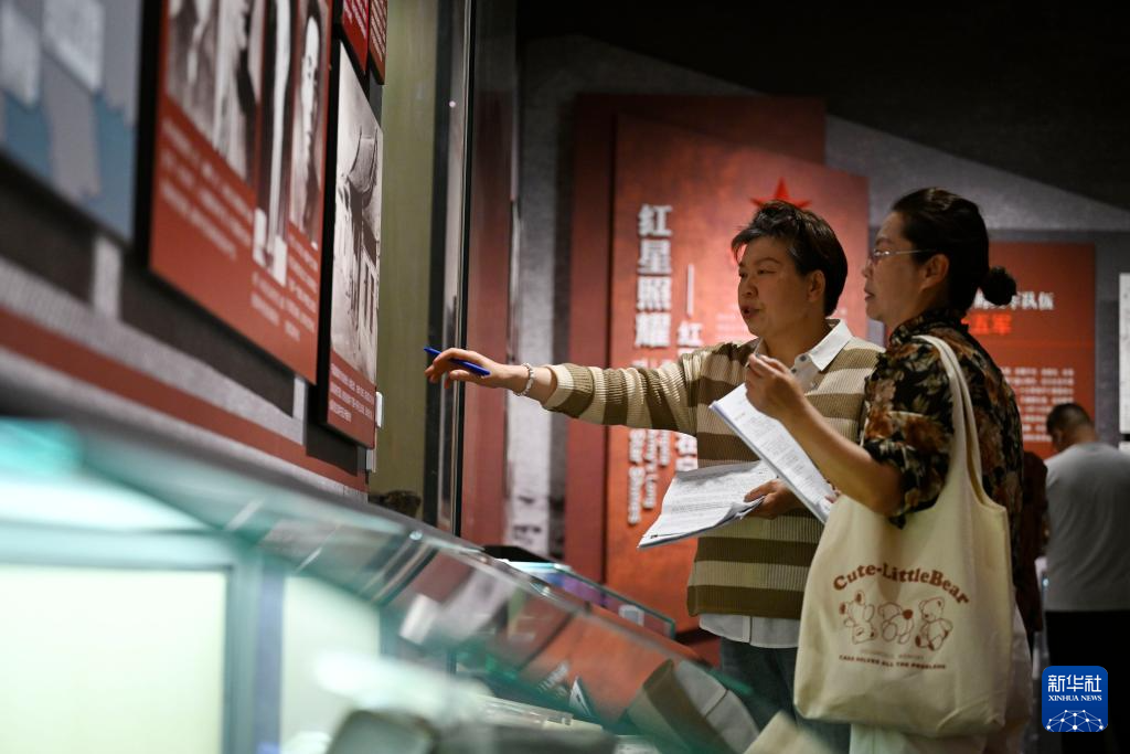 义务讲解员在宁夏博物馆记录学习文物知识,了解文物故事(5月14日摄)。