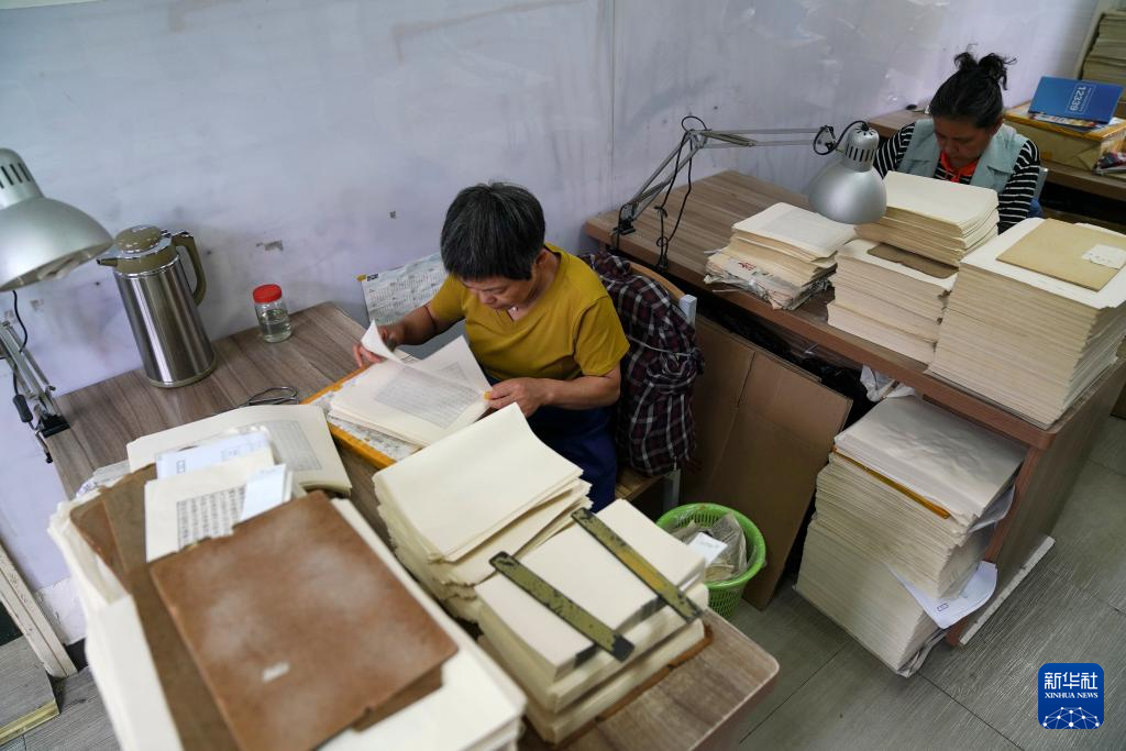 6月27日,在金陵刻经处技艺展示区,工作人员在分页。