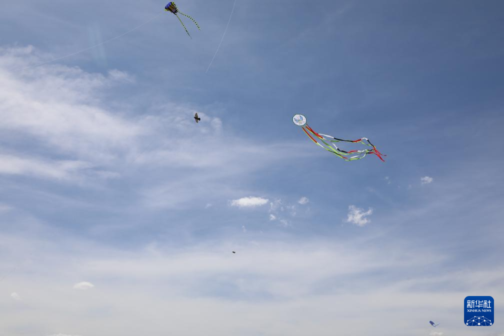 8月17日,在哥伦比亚莱瓦,鸟儿和风筝一起飞在空中。