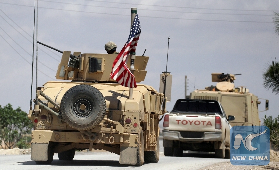 File Photo: The U.S. flag flutters on a military vehicle in Manbej countryside, Syria May 12, 2018. (Xinhua/REUTERS)