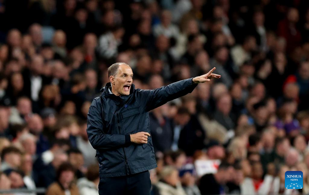 England's head coach Thomas Tuchel gestures during a friendly football match between England and Wales at Wembley Stadium in London, Britain, Oct. 9, 2025. (Xinhua/Li Ying)