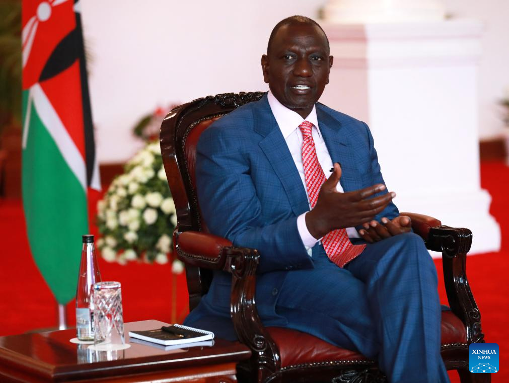 Kenyan President William Ruto is pictured during an interview with Xinhua in Nairobi, capital of Kenya, April 17, 2025.(Xinhua/Han Xu)