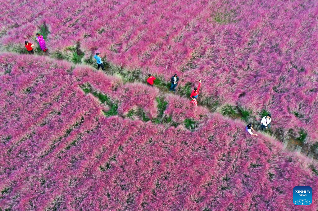 An aerial drone photo shows people having fun in Zhaohe Town of Mengzhou City, central China's Henan Province, Oct. 7, 2025. China recorded 888 million domestic tourist trips during the eight-day National Day and Mid-Autumn Festival holiday, up 123 million from the seven-day National Day holiday in 2024, the Ministry of Culture and Tourism said Thursday.