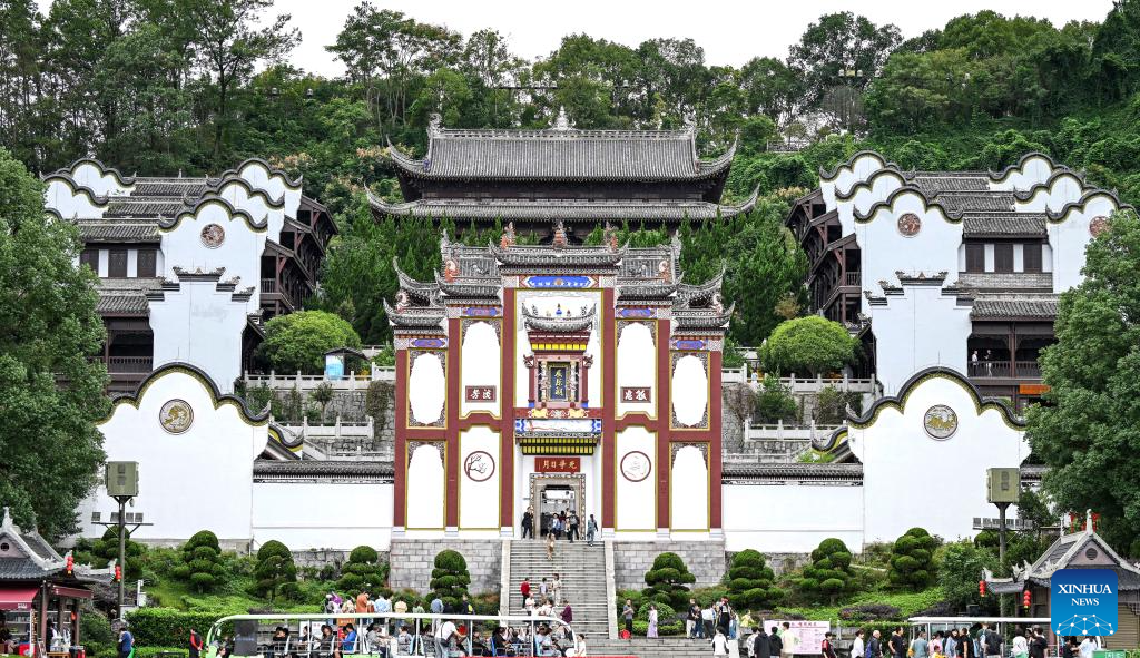 People visit the Qu Yuan Temple, commemorating a patriotic poet of ancient China, in Zigui County of Yichang City, central China's Hubei Province, Oct. 3, 2025. China recorded 888 million domestic tourist trips during the eight-day National Day and Mid-Autumn Festival holiday, up 123 million from the seven-day National Day holiday in 2024, the Ministry of Culture and Tourism said Thursday.
