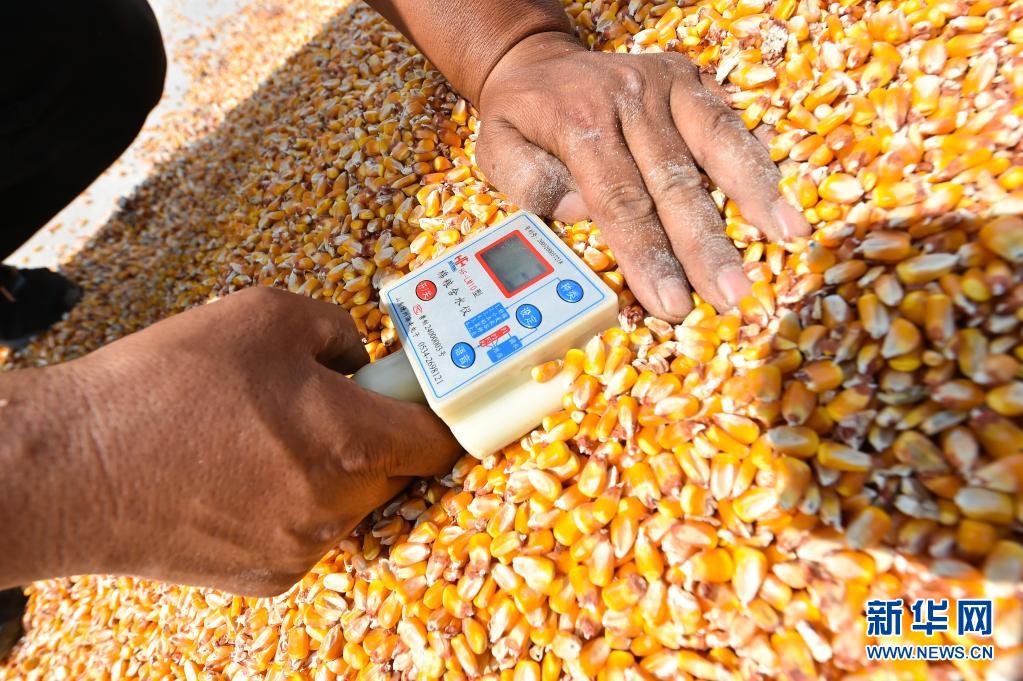 在山西省運(yùn)城市萬榮縣南張鄉(xiāng)太趙村,種糧戶李挺用儀器測(cè)量玉米的含水量(2020年9月20日攝)。據(jù)李挺介紹,農(nóng)機(jī)GPS定位、無人機(jī)噴灑農(nóng)藥、機(jī)械化收割等已滲透到農(nóng)業(yè)生產(chǎn)的各個(gè)環(huán)節(jié),臉朝黃土背朝天的農(nóng)民變成了指揮機(jī)器高效種糧的“新農(nóng)夫”。