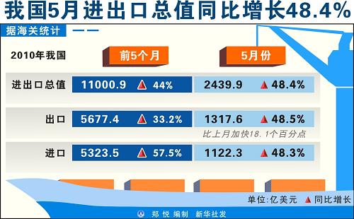 5月進(jìn)出口總值同比增長(zhǎng)48.4%