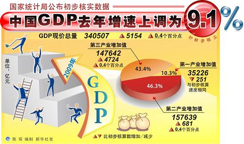 中國(guó)GDP去年增速上調(diào)為9.1%