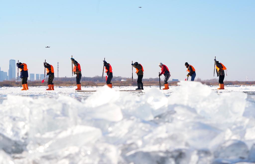 采冰人凿开冰面的第一声脆响