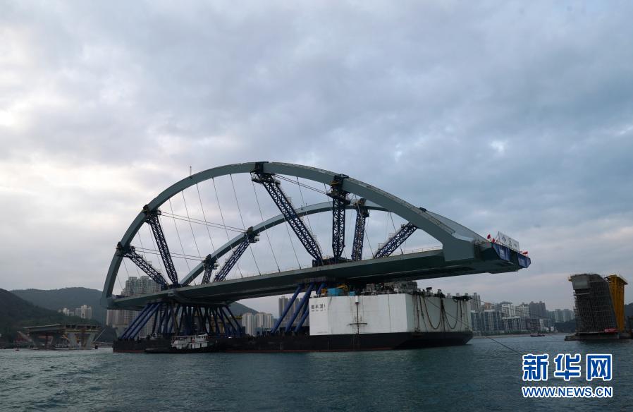 2月26日,將軍澳跨灣大橋主橋順利完成浮托安裝,浮托安裝總重達(dá)12000噸,總長(zhǎng)214米,創(chuàng)造國內(nèi)單體拱橋整體安裝的新紀(jì)錄。