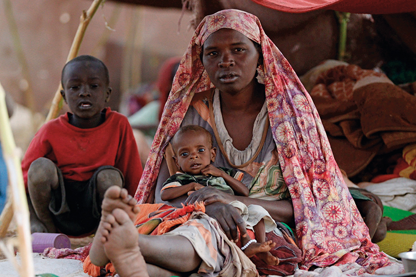 7月9日,在苏丹北达尔富尔州法希尔,一名女子抱着营养不良的儿童