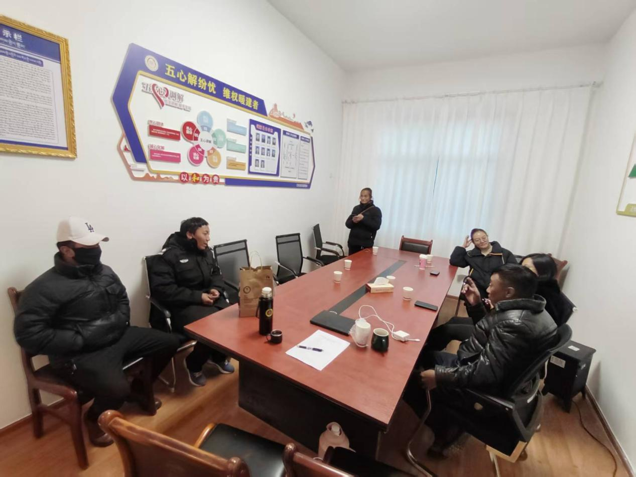 针对矛盾调解的痛点难点,江扎社区创新推出“耐心倾听、公心说理、交心沟通、诚心化解、尽心回访”的“五心调解”工作法,坚持“情绪先疏导、事实再厘清”原则,设立独立调解室,鼓励群众说真话、讲实情;将《民法典》《西藏自治区民族团结进步模范区创建条例》等法律条文转化为通俗易懂的家常话,结合典型案例释法析理,解读惠民政策,提升群众法律认知水平。