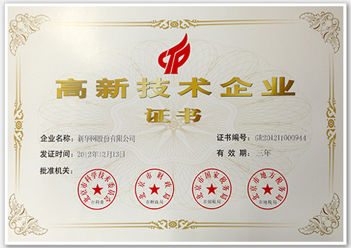 新華網(wǎng)獲頒國家高新技術(shù)企業(yè)證書,成為首家獲得高新技術(shù)企業(yè)認(rèn)定的中央重點新聞網(wǎng)站。