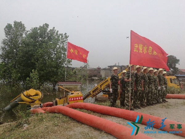 ????7月30日15時許,水電二支隊官兵經(jīng)過6晝夜艱苦鏖戰(zhàn),成功封堵安徽池州東湖圩潰堤決口。決口雖已堵住,圩內(nèi)12個村莊1000多戶群眾依然被1.5多深的洪水浸泡著,為了讓受災(zāi)群眾早日重返家園,他們用“龍吸水”排水搶險車展開抽排積水工作。8月1日這天,官兵仍然在緊張忙碌著,不獲全勝決不收兵?。P(guān)國勝 圖/文)