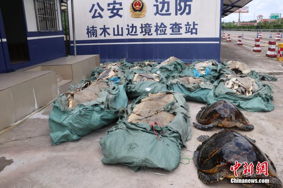 ????6月27日,廣西防城港邊防支隊楠木山邊境檢查站執(zhí)勤官兵在對一輛重型廂式貨車?yán)袡z查時,查獲涉嫌非法運(yùn)輸玳瑁標(biāo)本2只、鯊魚皮11袋。這兩只玳瑁標(biāo)本重量共達(dá)到40多公斤,而11袋鯊魚皮重約1噸。據(jù)悉,玳瑁是國家二級重點(diǎn)保護(hù)野生動物,已被列入《世界自然保護(hù)聯(lián)盟》(IUCN)2012年瀕危物種紅色名錄。(張振國)