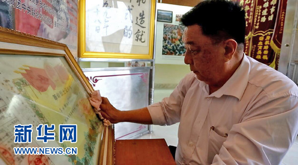 在??谑袞|山鎮(zhèn),李德清在家中擦拭兒子李向群的烈士證(2017年4月22日攝)。新華社發(fā)