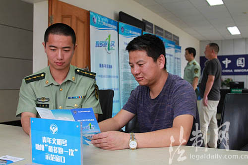 ????“您可以通過關(guān)注我們的微信公眾號(hào)‘紅色港灣’,及時(shí)了解證件辦理所需材料、注意事項(xiàng),避免由于手續(xù)不全多次往返?!贝┥竭叿罊z查站執(zhí)勤業(yè)務(wù)一科教導(dǎo)員莫曉涵在對(duì)前來辦理證件的船員家屬介紹到。8月5日,浙江公安邊防總隊(duì)穿山邊防檢查站立足職能,結(jié)合實(shí)際,在一線執(zhí)勤窗口扎實(shí)開展了“最多跑一次”宣傳活動(dòng)。