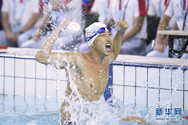 走出泳池,張政成了場上的“明星”,和幾個隊友擁抱擊掌后,便立刻被眾人圍在中間?,F(xiàn)場觀眾和其他運動員紛紛向他表示祝賀,人群中不時有人歡呼著“世界紀錄!世界紀錄!”。隨后,激動的張政披著國旗,在泳池邊跟家人、朋友合影,定格了這難忘的一刻。