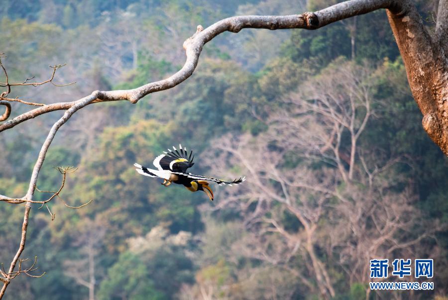 這是3月19日拍攝的雙角犀鳥。新華社記者 王冠森 攝