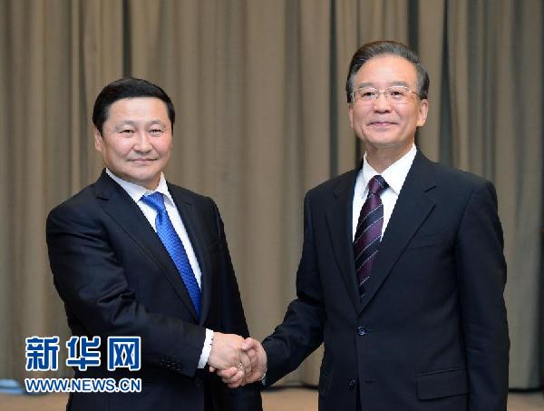 ??? 12月5日,國務院總理溫家寶在比什凱克會見蒙古國總理阿勒坦呼亞格。 新華社記者謝環(huán)馳攝