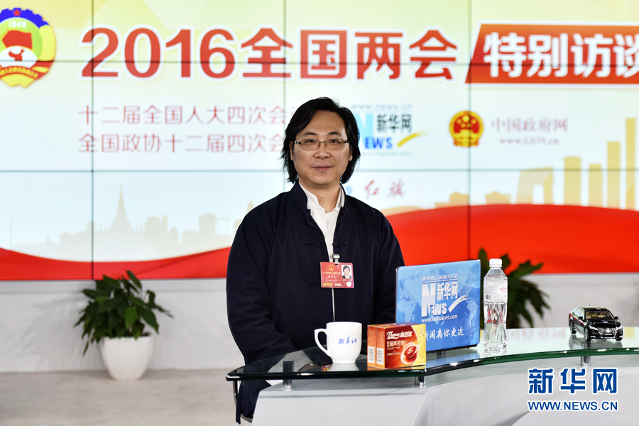 3月13日,全國人大代表、中國文聯(lián)全委、中國音樂家協(xié)會副主席,上海音樂家協(xié)會副主席、上海音樂學院副院長廖昌永做客新華網(wǎng)2016全國兩會特別訪談,與新華網(wǎng)網(wǎng)友在線交流。圖為廖昌永在訪談現(xiàn)場。新華網(wǎng) 郭小天 攝