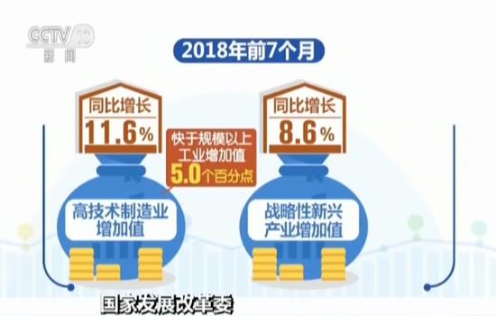 今年前7個(gè)月,高技術(shù)制造業(yè)、戰(zhàn)略性新興產(chǎn)業(yè)增加值同比分別增長11.6%和8.6%,分別快于規(guī)模以上工業(yè)5.0和2.0個(gè)百分點(diǎn);高技術(shù)制造業(yè)占規(guī)模以上工業(yè)比重已經(jīng)達(dá)到13%,同比提高0.7個(gè)百分點(diǎn)。