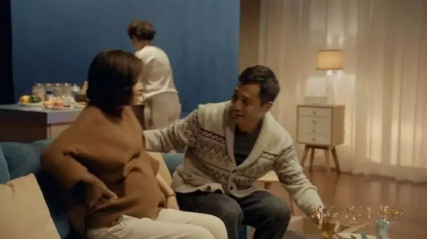 回到現(xiàn)代家庭的生活,人們的飲食、穿著、所用的生活電器都有明顯提升,這與之前八十年代的家庭形成了鮮明的對比。劉燁扶著懷孕的妻子一起坐在沙發(fā)上,妻子隆起的小腹代表著劉燁這個家庭對全面二孩政策的響應。