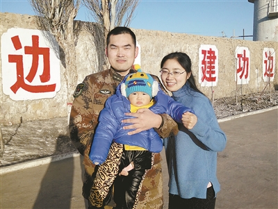 指導(dǎo)員楊浩的妻子田茹是在去年除夕夜真正讀懂丈夫的。那天夜里,她陪著丈夫在連隊(duì)站崗,頭頂滿天繁星,腳下戈壁遼闊,遠(yuǎn)方煙花絢爛,耳邊爆竹聲聲……“他守著國,我守著他”。