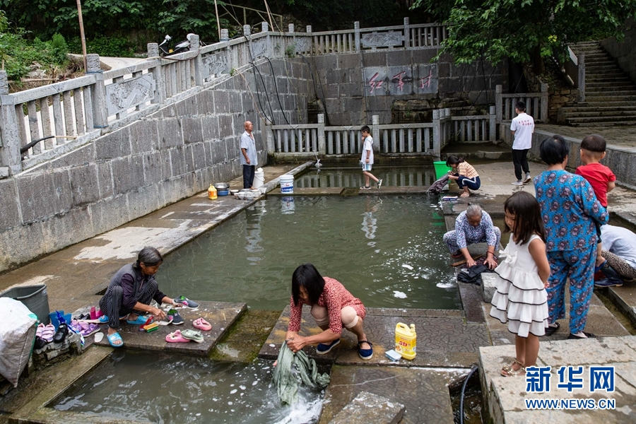 在紅軍井洗衣的當?shù)匕傩?。新華社記者 吳壯 攝