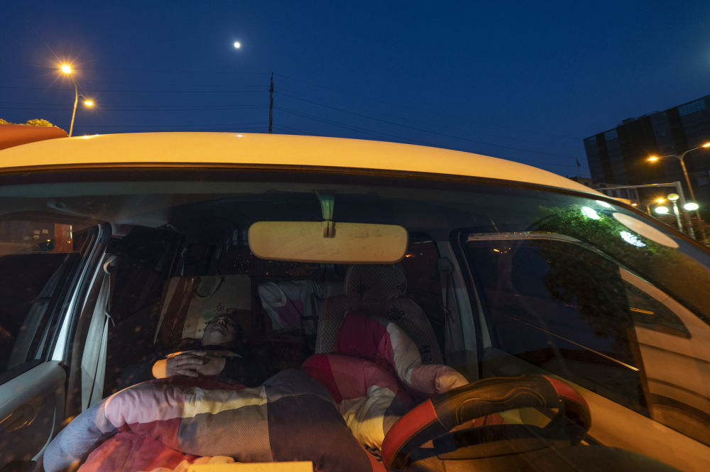 ↑3月7日,入夜之后,馬增辰在自己的面包車上進(jìn)入了夢(mèng)鄉(xiāng)。此時(shí),一輪明月爬上了半空。