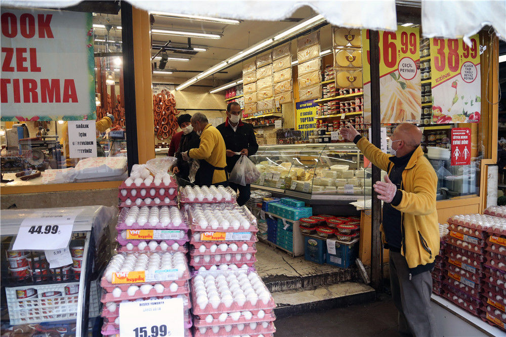 4月22日,安卡拉市民在購物,幾乎都戴了口罩。新華社發(fā)(穆斯塔法·卡亞攝)