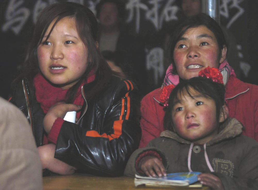 ↑ 2006年1月13日,“掃盲夜校”學(xué)員在甘肅漳縣三岔鎮(zhèn)中心小學(xué)上課。