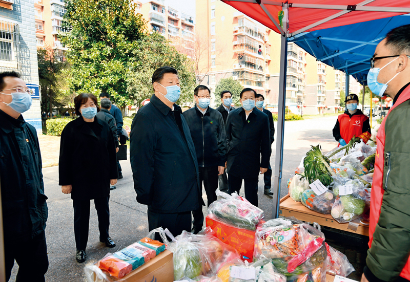 2020年3月10日,中共中央總書記、國家主席、中央軍委主席習(xí)近平專門赴湖北省武漢市考察新冠肺炎疫情防控工作。這是習(xí)近平在東湖新城社區(qū)生活物資集中配送點(diǎn),詳細(xì)詢問社區(qū)群眾生活物資采購和供應(yīng)情況。 新華社記者 謝環(huán)馳/攝