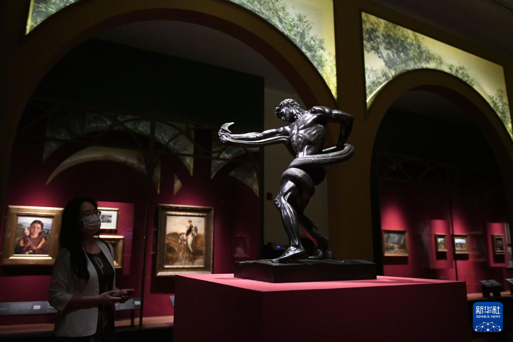 这是4月27日在广东省博物馆的“绽放:维多利亚时代的艺术”预展上拍摄的《与蟒搏斗的勇士》。