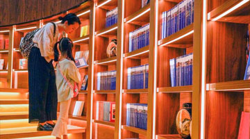 8月1日,两名小游客在一位村民家中看他写扇面。