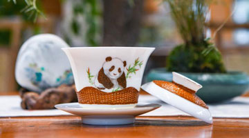 3月24日,府学胡同小学学生向来宾介绍学生创作的作品。