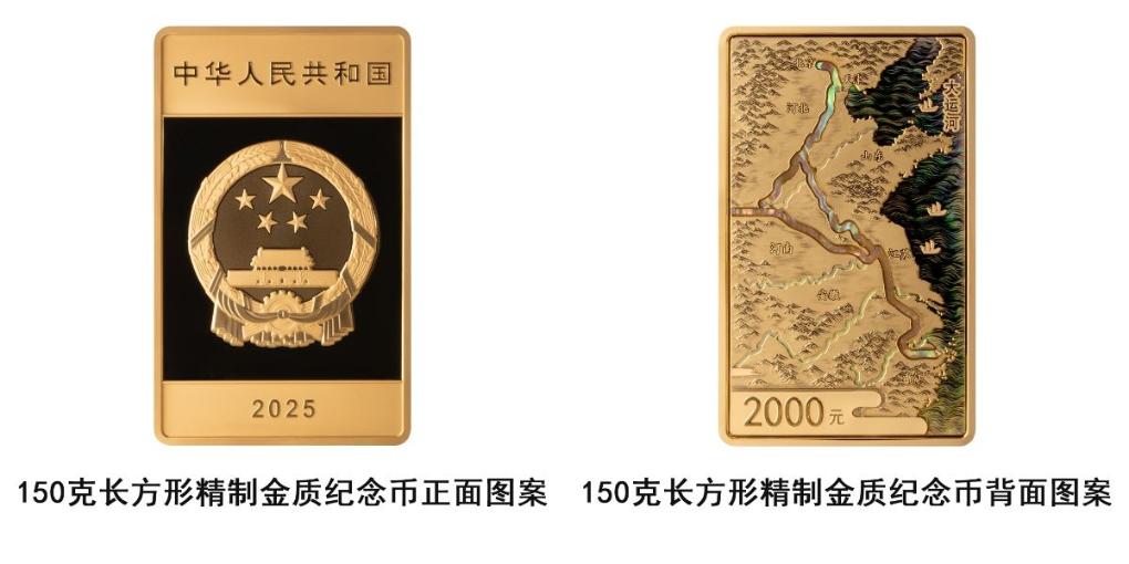 中国人民银行定于2025年7月25日发行大运河金银纪念币一套。该套纪念币共9枚,其中金质纪念币1枚,银质纪念币8枚,均为中华人民共和国法定货币。