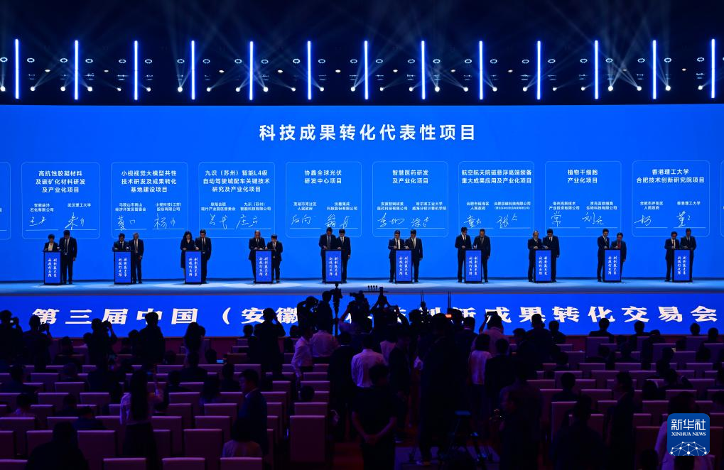 4月26日在第三届中国(安徽)科技创新成果转化交易会开幕式现场举行的科技成果转化代表性项目签约仪式。