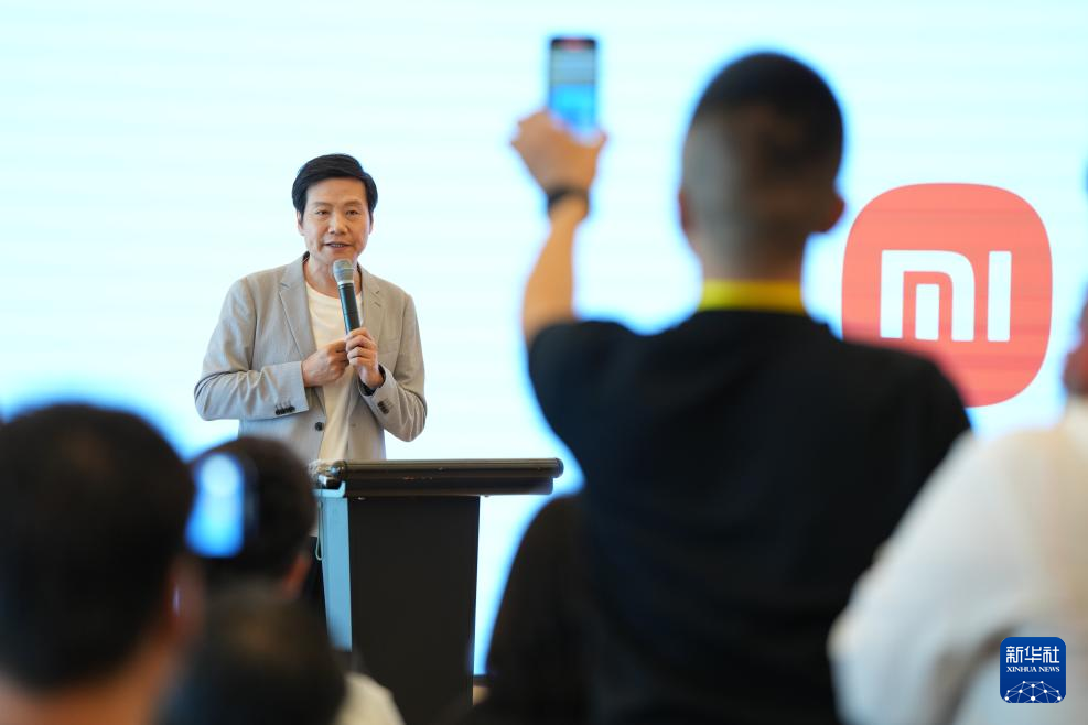 6月16日,小米集团创始人、董事长兼CEO雷军在北京小米汽车工厂在媒体见面会上发言。