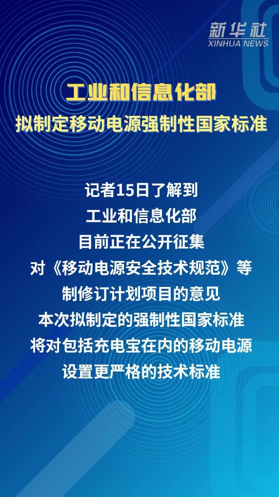 工業(yè)和信息化部擬制定移動(dòng)電源強(qiáng)制性國(guó)家標(biāo)準(zhǔn)