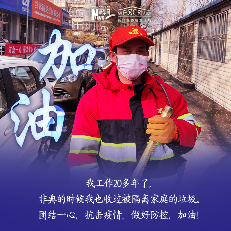 魏云松,作為北京市某保潔班的班長,平時(shí)的工作以業(yè)務(wù)檢查和人員管理為主。這次防疫工作開始以后,得知要開始清運(yùn)居家隔離人員的生活垃圾,他主動(dòng)承接了領(lǐng)隊(duì)的工作。他的母親因?yàn)槿橄侔┻€在醫(yī)院治療,他的女兒還不滿一歲半。但是他知道,只要這座城市是干凈的,大家才會(huì)更開心地團(tuán)聚。