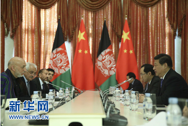????習(xí)近平指出,2014年之后,阿富汗的命運將更加緊密地同地區(qū)國家聯(lián)系在一起。中方支持阿富汗融入地區(qū)經(jīng)濟合作。中方將于8月舉辦阿富汗問題伊斯坦布爾進程第四次外長會,我們愿同阿方密切合作,辦好這次會議。中方也愿推動上海合作組織在阿富汗問題上發(fā)揮更大作用。