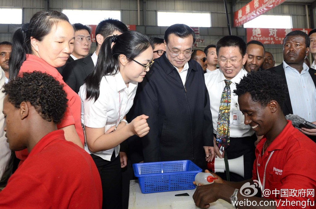 新華網(wǎng)北京5月6日電 據(jù)中國政府網(wǎng)微博報(bào)道,5日下午,李克強(qiáng)在埃塞總理陪同下參觀東方工業(yè)園。該園由中方投資興建,目前已為當(dāng)?shù)靥峁?000余個(gè)就業(yè)崗位。李克強(qiáng)說,中國愿意把可轉(zhuǎn)移的勞動(dòng)密集型產(chǎn)業(yè)優(yōu)先轉(zhuǎn)移到非洲,帶動(dòng)當(dāng)?shù)鼐蜆I(yè),促進(jìn)發(fā)展,增強(qiáng)非洲自我發(fā)展能力,造福雙方人民。